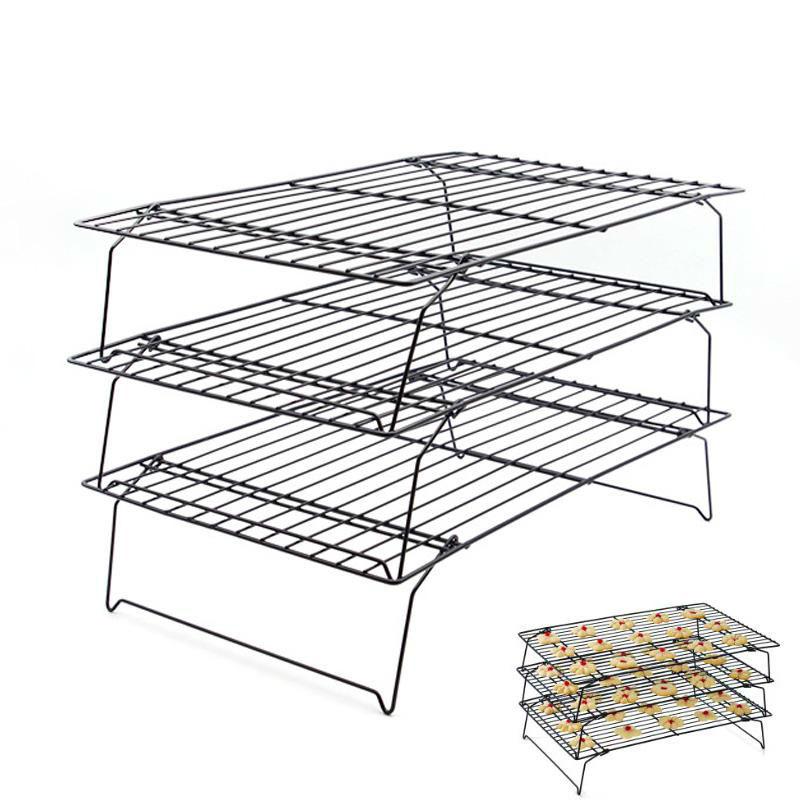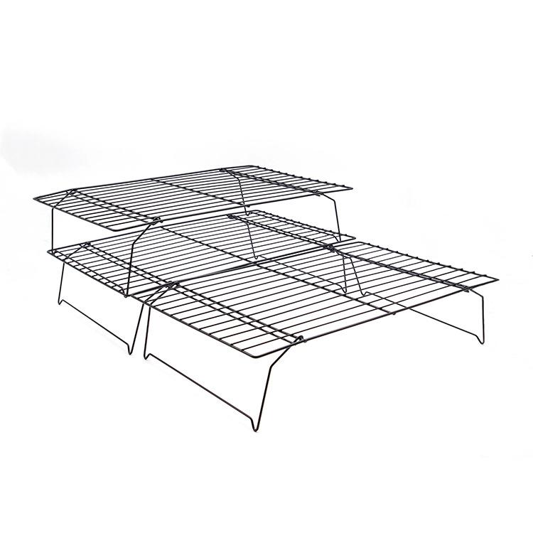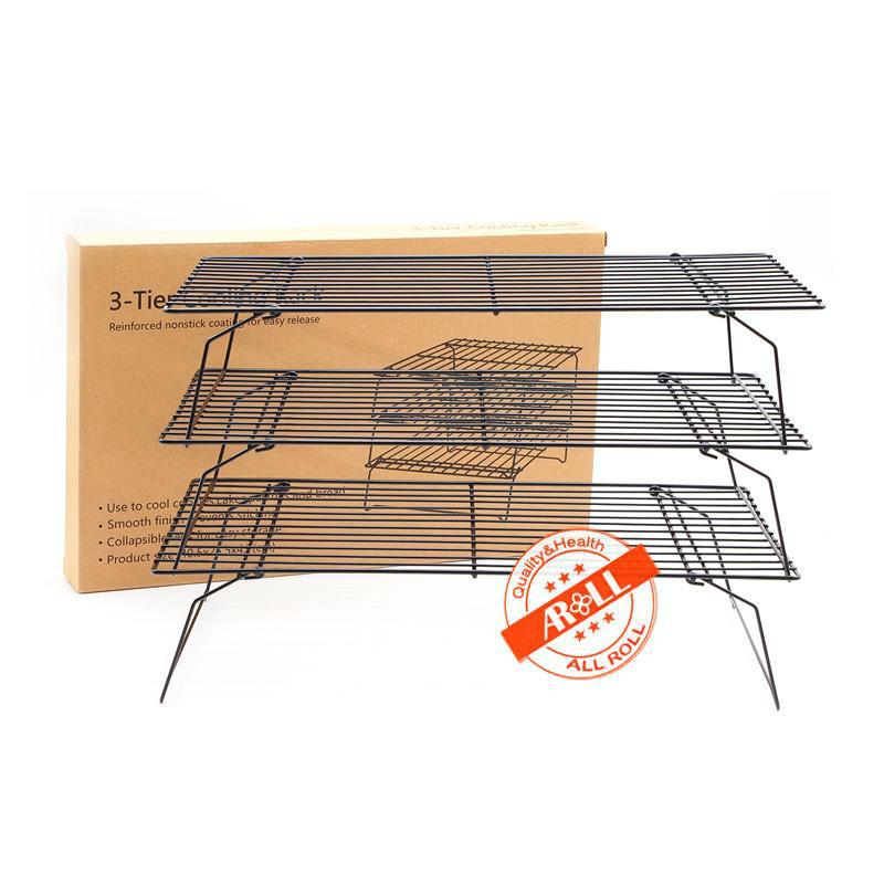- 3-tier cooling rack stacks and collapses for space-efficient use. - Made of sturdy steel wires allow airflow while securely holding small or large items. - A reinforced nonstick coating...